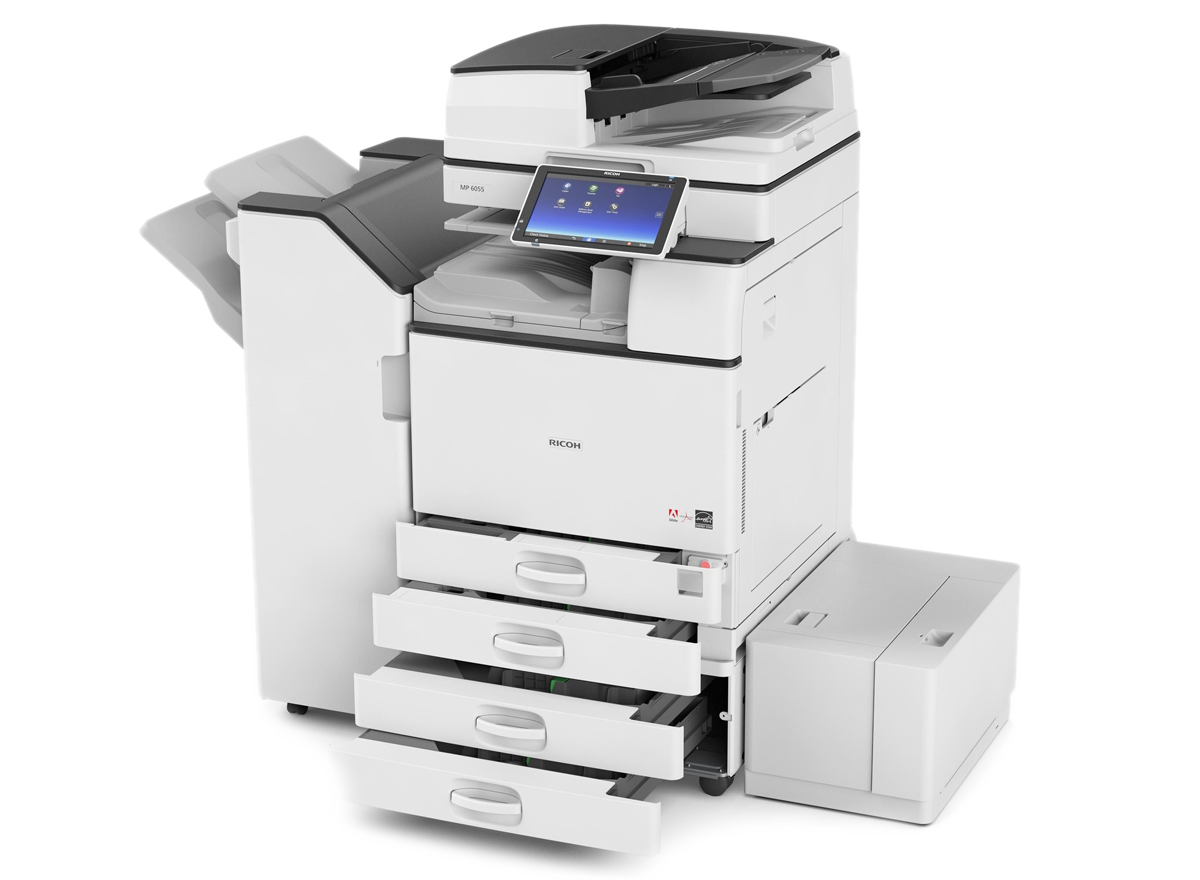 The MP 4055/MP 5055/MP 6055 multifunction b&w systems are ideal for fast-paced environments that depend on sophisticated features to support complex workflows. They come standard with PostScript3 Emulation, offer speeds up to 60 pages per minute, exceptional MFP functionalities and 1200 x 1200 dpi image quality. Plus, different paper capacity options give users the flexibility to load multiple stocks and sizes at the same time. With a full line of finishing capabilities, support for mobile device printing, and a robust processor, users can perform everyday office tasks with ease – without compromising security or their commitment to the environment.